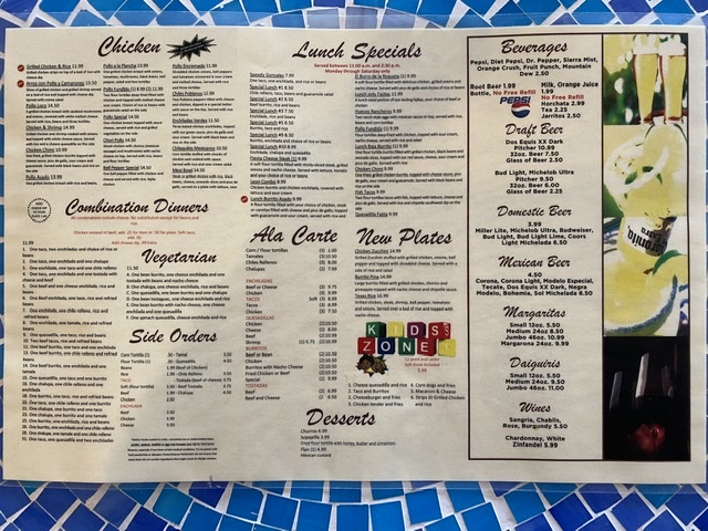 Drinks complement the meals with a range that includes classic sodas, sweet tea, and traditional Mexican beverages like horchata. These options enhance the relaxed, comfortable atmosphere that suits both quiet afternoons and lively family meals.
