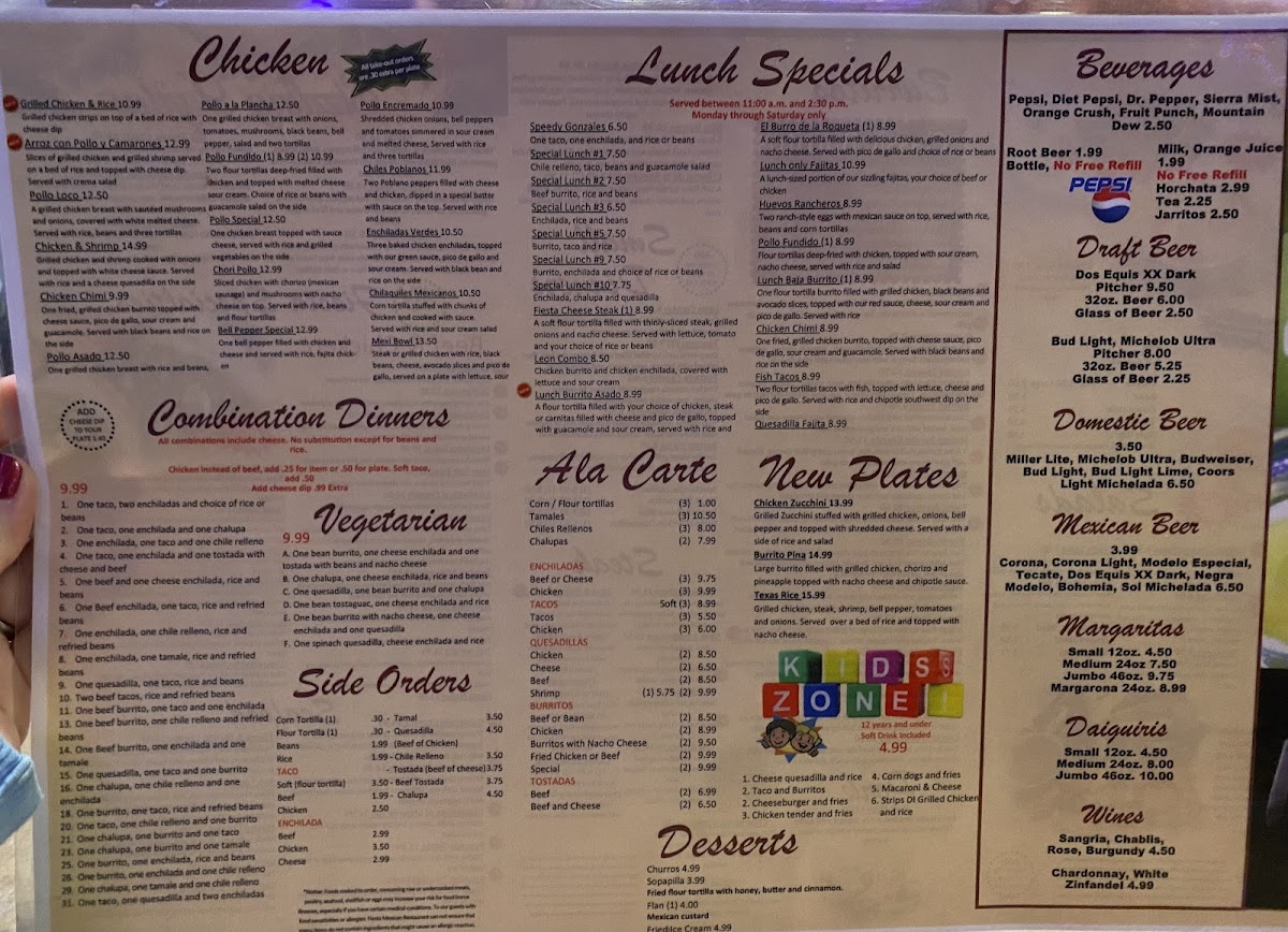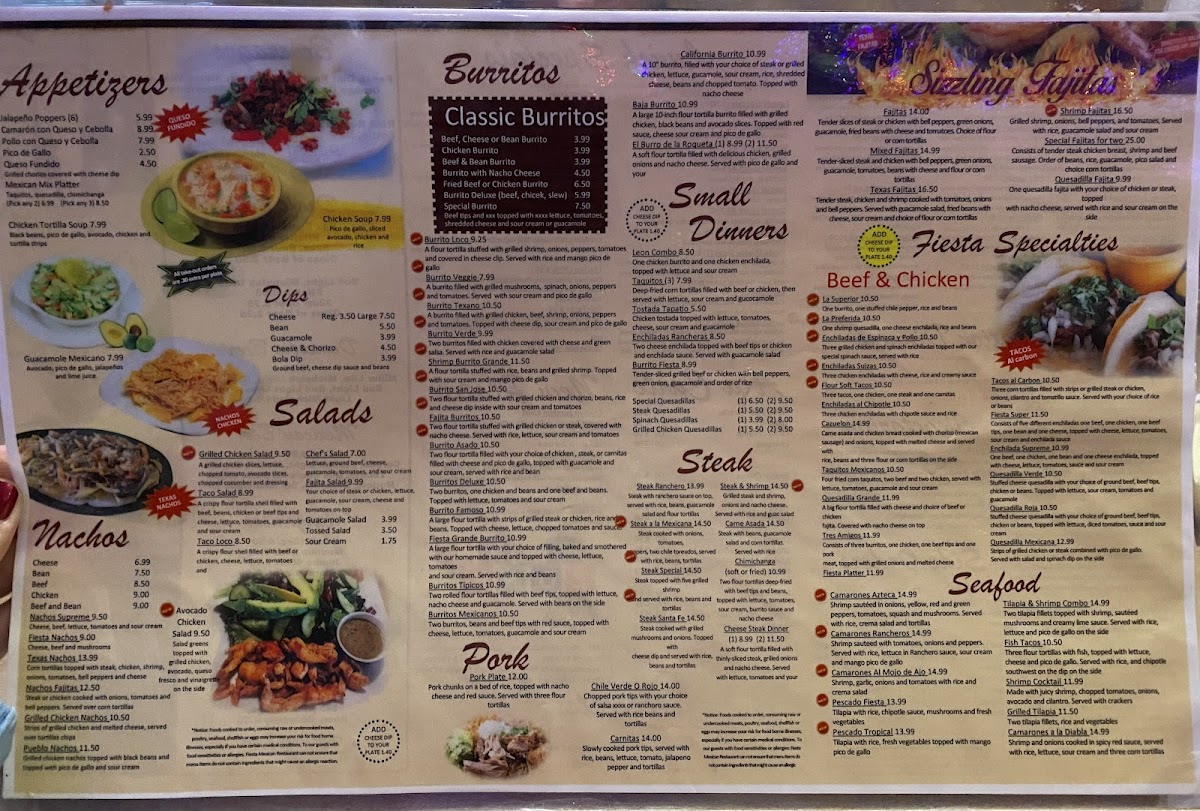 Fiesta Mexican Restaurant on 81 Menu